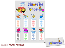 Couleur, Prénom, Date, Thème, Dessins .... (suivant les modèles)