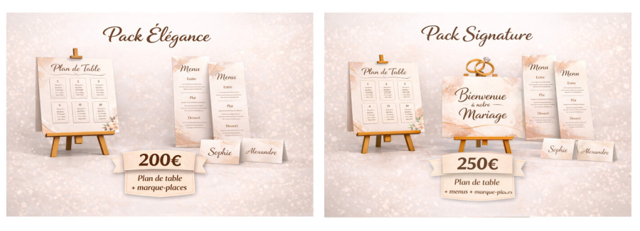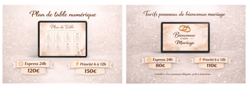 Tarifs Packs mariage (numérique - prêt à imprimer)