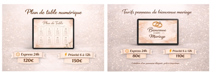 Plan de table & Panneau de Bienvenue Mariage urgence : Création express sous 24h